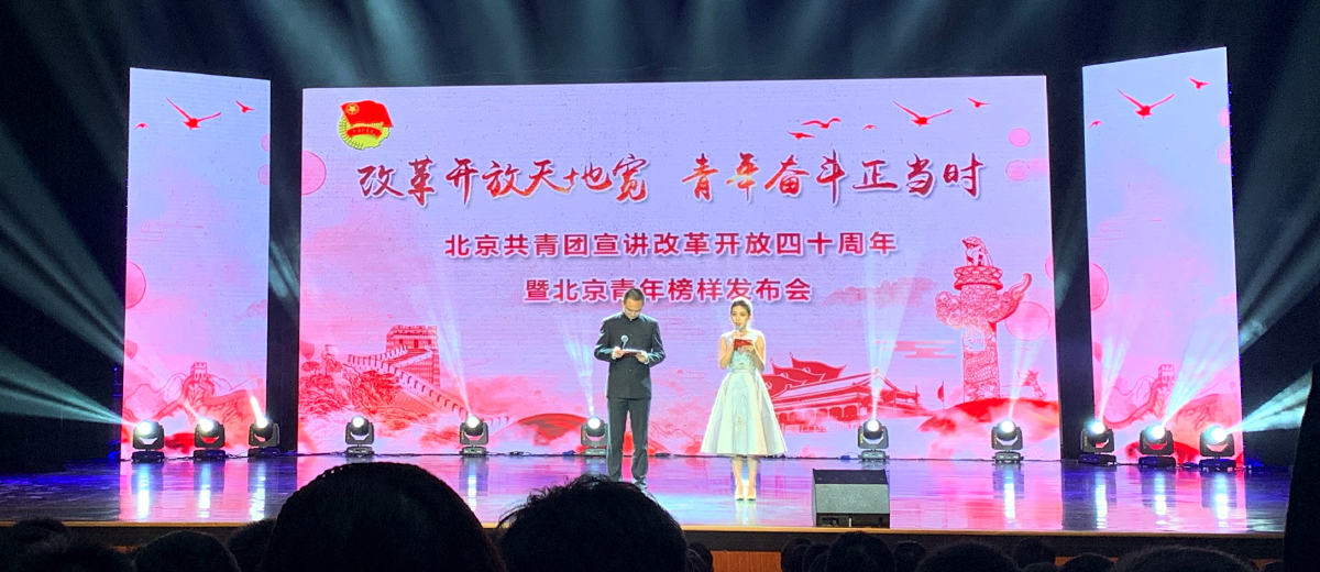為慶祝改革開放40周年,在“一二·九”運(yùn)動(dòng)83周年來(lái)臨之際,由北京團(tuán)市委主辦的“改革開放天地寬 青年奮斗正當(dāng)時(shí)”北京共青團(tuán)宣講改革開放四十周年暨北京青年榜樣發(fā)布會(huì)于12月7日晚在北京物資學(xué)院舉行?;顒?dòng)現(xiàn)場(chǎng)發(fā)布了30位“北京青年榜樣·時(shí)代楷模”年度人物,同時(shí)也開啟了北京共青團(tuán)紀(jì)念改革開放40周年宣講活動(dòng)。